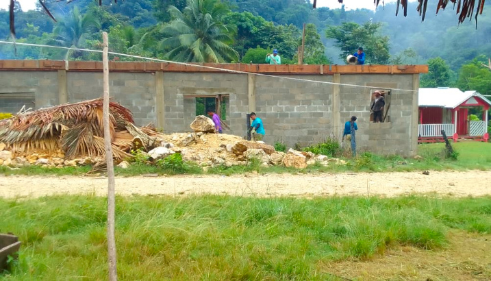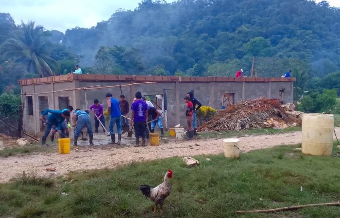 Church members working on church building